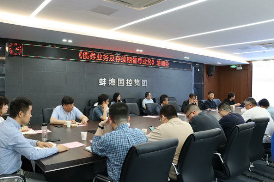 2023年5月30日下午,東興證券債券業(yè)務(wù)二部負(fù)責(zé)人史超、債券業(yè)務(wù)總監(jiān)王喆、胡昆霖來蚌埠國控集團(tuán)進(jìn)行債券業(yè)務(wù)及存續(xù)期督導(dǎo)業(yè)務(wù)的培訓(xùn),集團(tuán)財(cái)務(wù)部全體人員及交投集團(tuán)、水投集團(tuán)、建院集團(tuán)、城開公司主要負(fù)責(zé)人、分管副總、財(cái)務(wù)或融資科室負(fù)責(zé)人參加培訓(xùn)。
