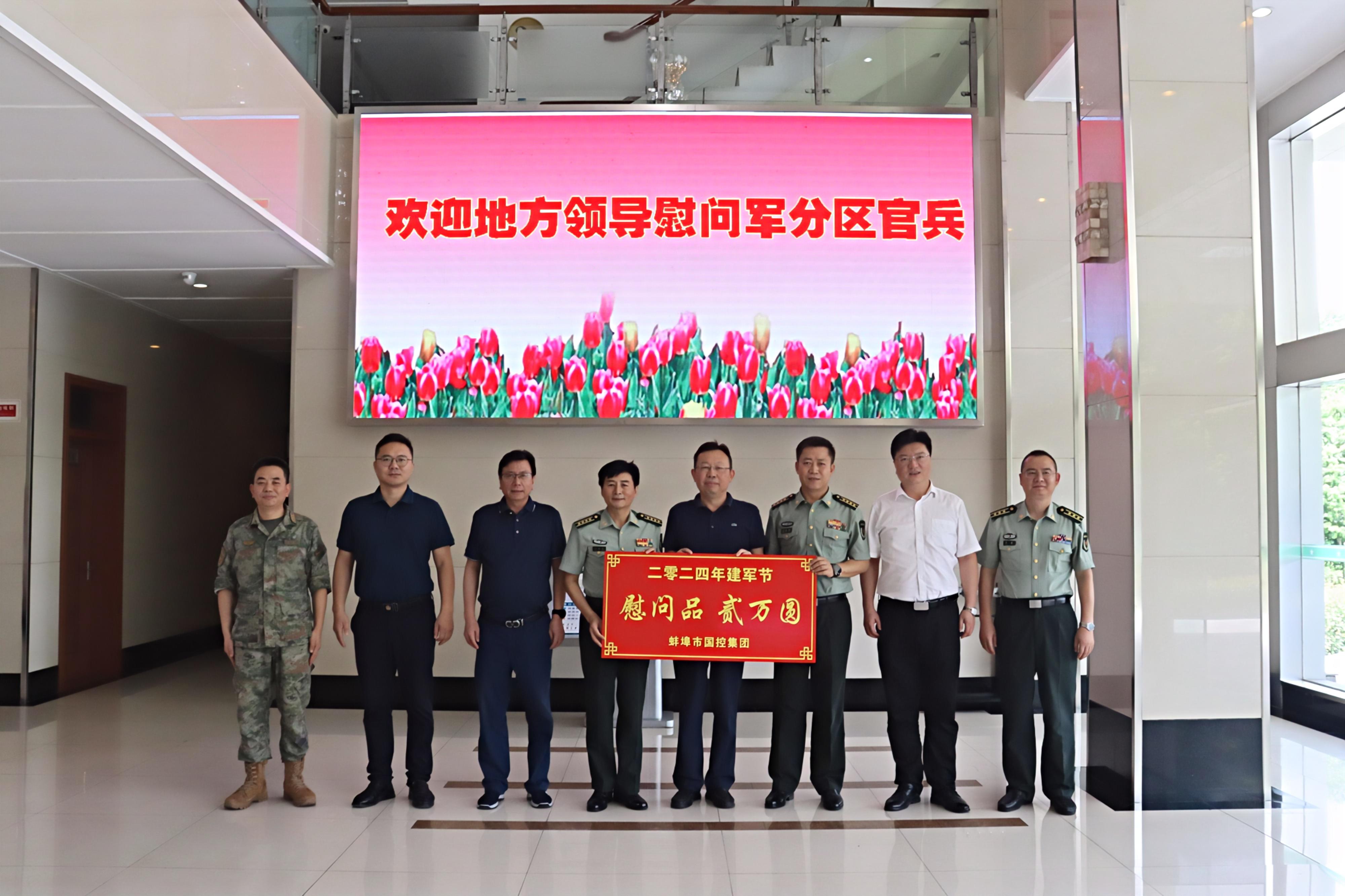 會(huì)后,軍地雙方組織了慰問品交接儀式,市國控集團(tuán)將價(jià)值2萬元的慰問品呈交蚌埠軍分區(qū)并合影留念。