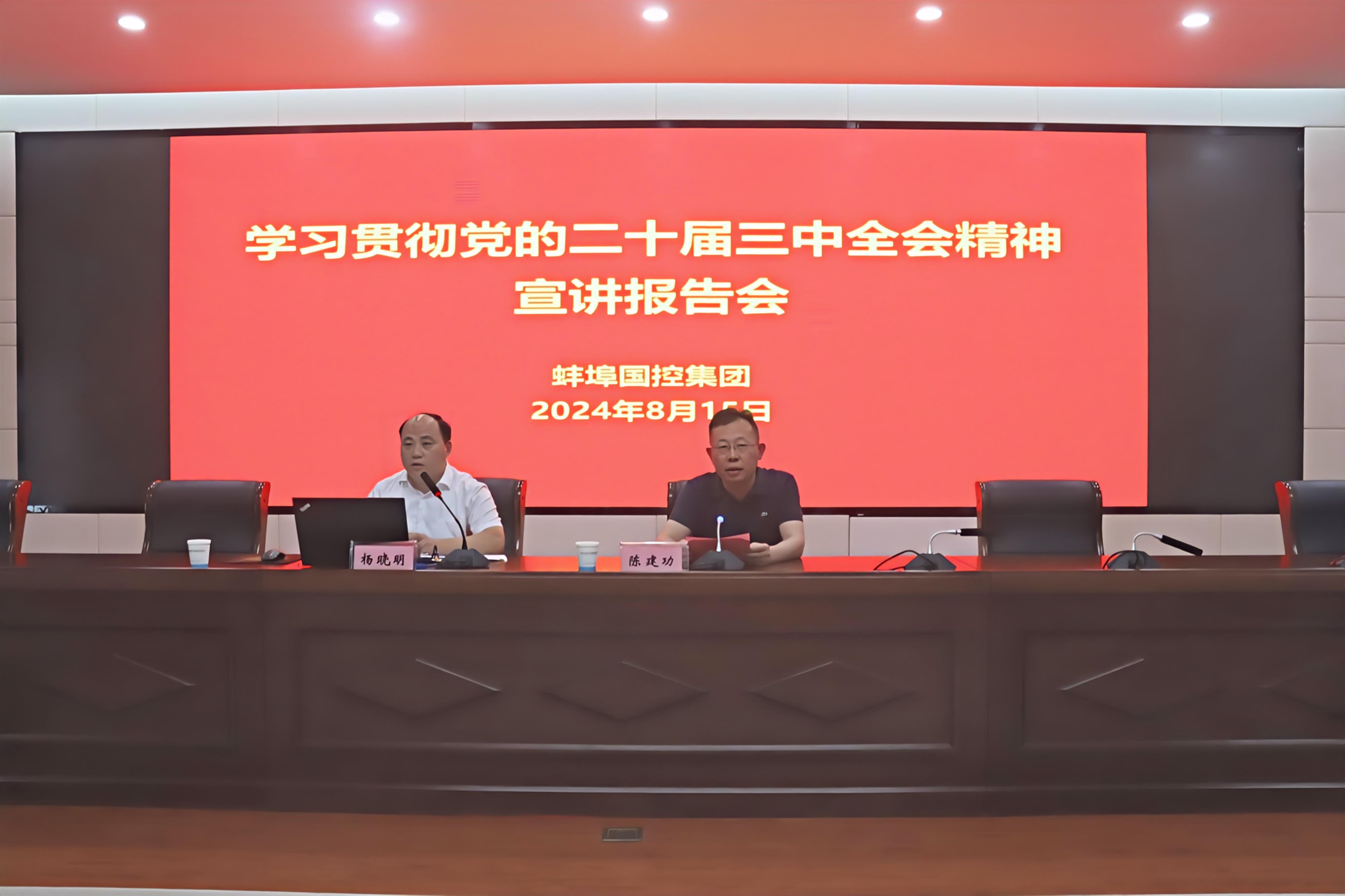 為認(rèn)真學(xué)習(xí)宣傳貫徹黨的二十屆三中全會(huì)精神,推動(dòng)落實(shí)國有企業(yè)改革發(fā)展新任務(wù)新要求,8月15日下午,市國控集團(tuán)舉辦學(xué)習(xí)貫徹黨的二十屆三中全會(huì)精神宣講報(bào)告會(huì),會(huì)議邀請市委副秘書長、市委政研室主任楊曉明作主題宣講,集團(tuán)黨委書記、董事長陳建功主持會(huì)議并講話。集團(tuán)領(lǐng)導(dǎo)班子成員、部門負(fù)責(zé)人,所屬子公司領(lǐng)導(dǎo)班子成員和基層黨組織書記代表共計(jì)88人參加會(huì)議。